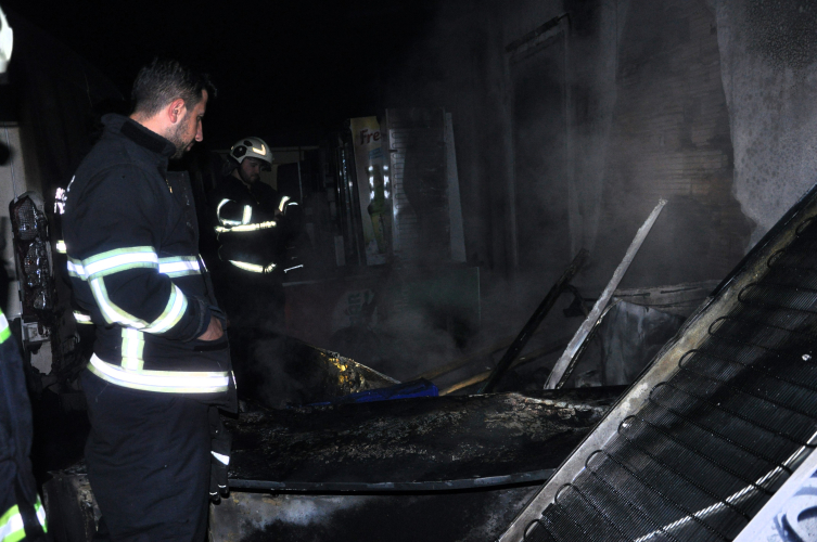 İtfaiye ekiplerinin müdahalesiyle söndürülen yangında depodaki 2 panelvan, motosiklet ve çok sayıda buzdolabı zarar gördü.