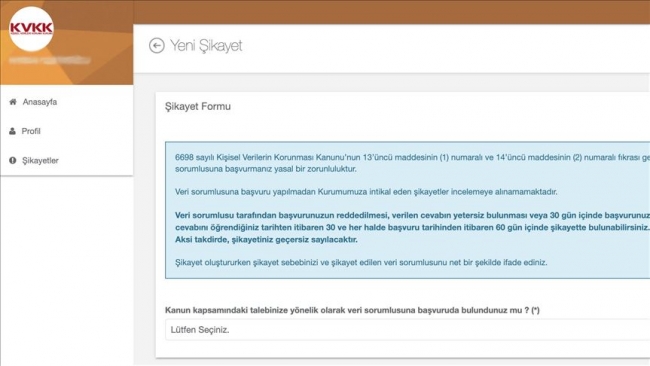 Kişisel Verileri Koruma Kurumu (KVKK), "www.kvkk.gov.tr"de "İlgili kişi şikayet bildirimi" adı altında "KVKK Şikayet Modülü" oluşturdu. Kişisel verisi işlenen ilgili kişilerin başvurularını bu alandan yapmalarına, başvurularını takip edebilmelerine imkan tanındı.