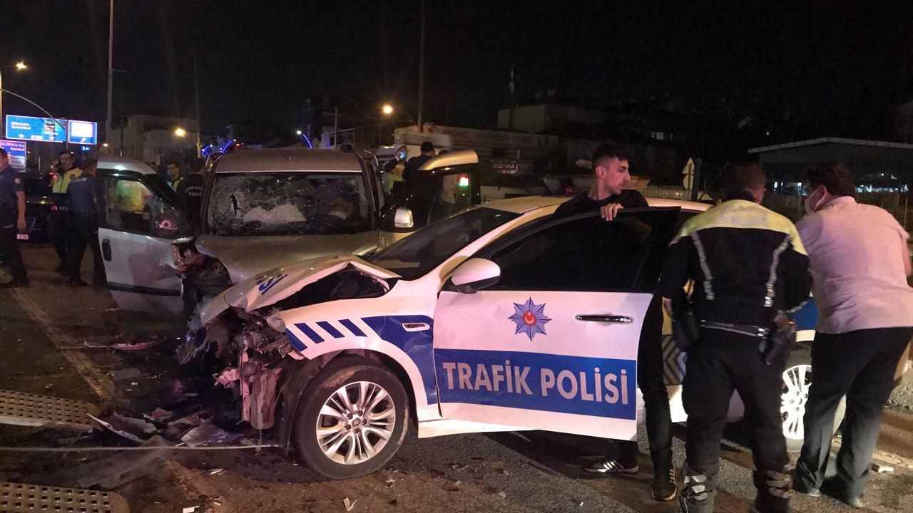 Önce denetim yapan bir polis memuruna çarparak yaralanmasına neden oldu. Ardından da 2 otomobil ile 2 polis otosuna çarparak durabildi.