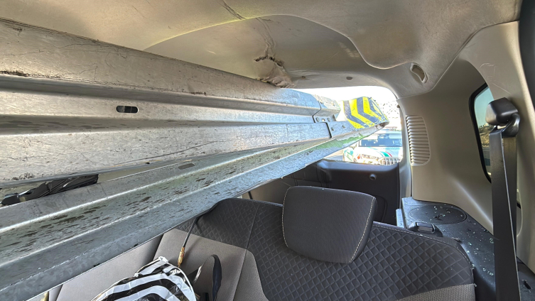 Demir bariyerlerin aracın içini delerek geçtiği kazada sürücü yaralandı. Durum 112 Acil Çağrı Merkezi’ne bildirildi.
