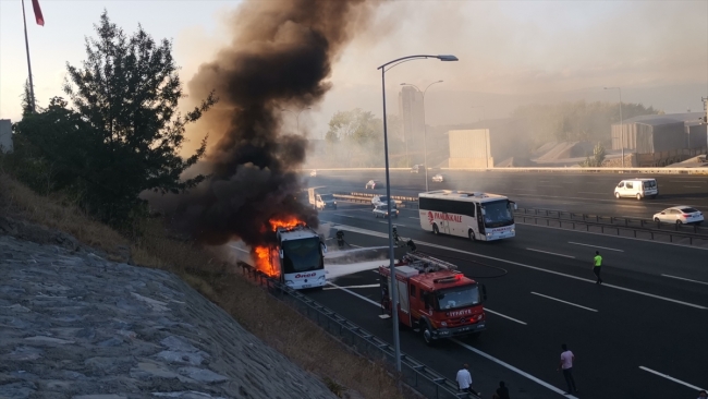 Kayseri'den İstanbul'a yolcu taşıyan Şemsettin Taştan idaresindeki 38 EM 737 plakalı otobüs, Anadolu Otoyolu Gebze gişeleri mevkiinde henüz bilinmeyen sebeple alev aldı.