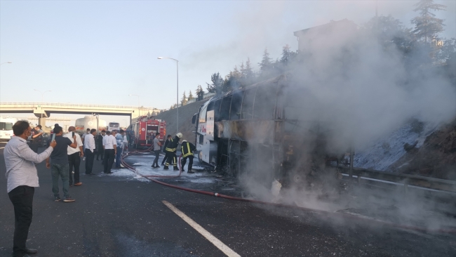 Bu arada aracın yandığını gören otobüs sahibinin eşi ise göz yaşlarına hakim olamadı.