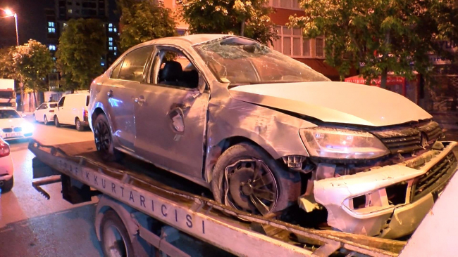 Otomobil daha sonra savrularak yol kenarında bulunan halı sahaya girdi.