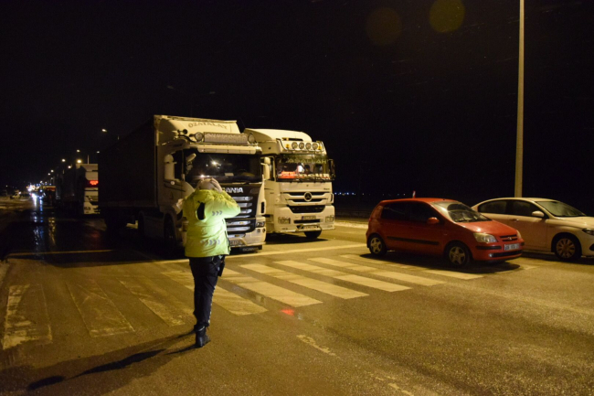 Ekipler, çekici ve yolcu otobüslerini otogar ve dinlenme tesislerine yönlendiriyor.