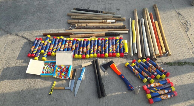 Polisin yaptığı aramalarda ise taraftarların üzerinde çok sayıda bıçak gibi kesici alet ve sopa ele geçirildi.