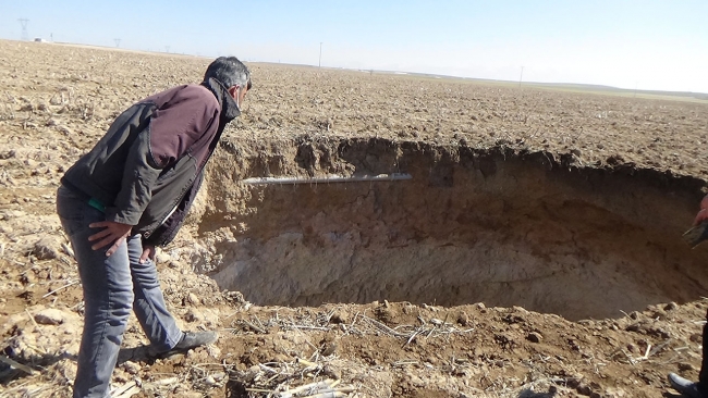 Konya'nın Karapınar ilçesinde bir tarlada 10 metre çapında 40 metre derinlikte obruk oluştu.