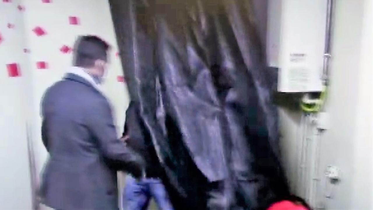 Baskın sırasında siyah bir perdenin arkasına saklanmak isteyen bir kişi de bulunduğu yerden çıkarıldı.