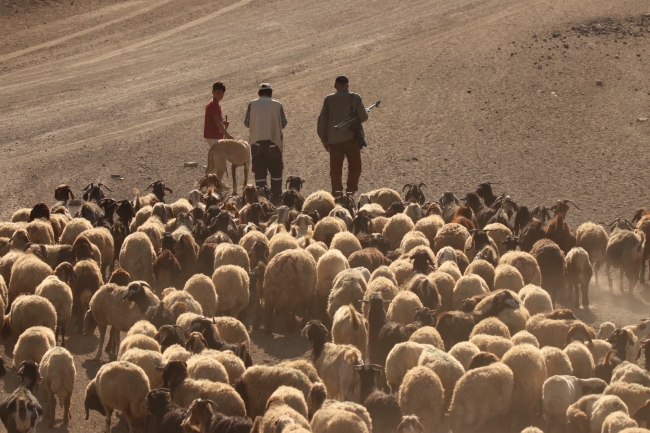 [Fotoğraf: DHA]600 koyunuyla Van'ın Erciş ilçesine 30 kilometre uzaklıktaki Morgedik yaylalarında yaz aylarını geçiren Erdal Bayramhan, havaların erken soğuması ve bu yıl etkili olan kuraklık yüzünden ot kalmadığını, bundan dolayı da bölgeden erken ayrıldıklarını söyledi.