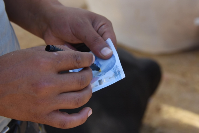 [Fotoğraf: DHA]Gaziemir ilçesindeki kurban pazarının işletmecileri, satıcıların bu mağduriyetinin önüne geçmek için sahte para kontrol kalemi dağıttı.