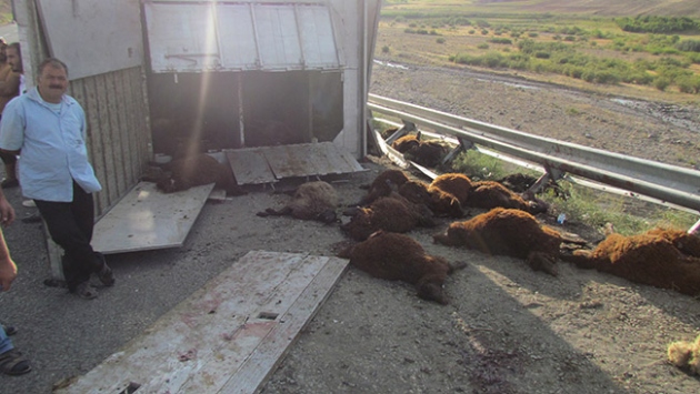 Kazada, sürücü Cankaya yaralanırken, TIR içerisinde bulunan 450 küçükbaş hayvandan 135'i sıkışarak telef oldu.