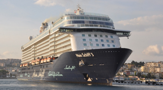 Ege Ports Limanı'na yanaşan Malta bayraklı TUİ Cruise firmasına ait "Mein Schiff 3" gemisinden inen çoğunluğu Alman 2 bin 739 yolcudan bazıları Efes Antik Kenti ve Meryemana Evi'ni ziyaret etti bazıları da Kuşadası'nda alışveriş yaptı.