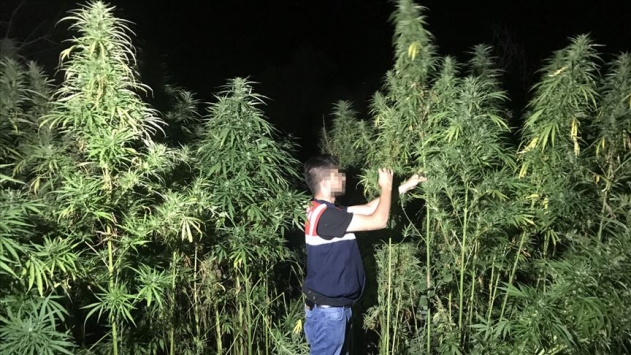 Operasyon düzenleyen ekipler, bahçedeki kenevirleri hortumla sulayan A.Ö. Y.Y. ve M.C.K.'yı suçüstü yakaladı.