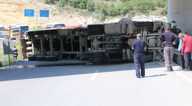 Alınan bilgiye göre, Bayram Aydınalp yönetimindeki 16 MBZ 37 plakalı cam malzemesi yüklü tır, Kütahya-Eskişehir karayolunun 22. kilometresindeki Ilıca Köprülü Kavşağı'nda kontrolden çıkarak devrildi.