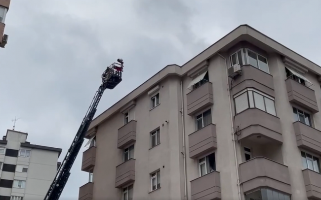[Fotoğraf: AA]Bacadan apartmanın çatısına yayılan yangına, lokantanın moto kuryesi ve çalışanları yangın tüpleri ile çatıya çıkarak müdahale etti.