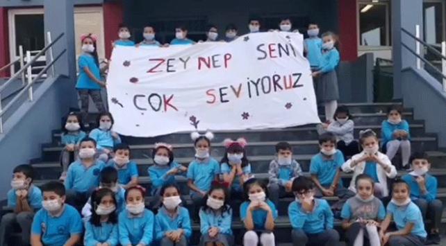 Pendik’te bir ilkokulda 2. sınıf öğrencisi olan lösemi hastası Zeynep Kübra Kaya’ya destek olmak için okul arkadaşları sürpriz hazırladı.