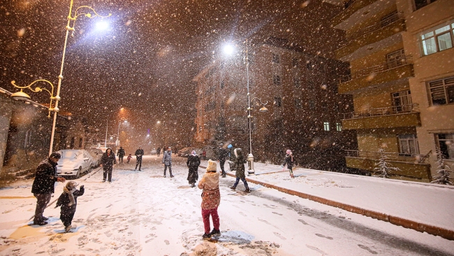 Karın yağması özellikle çocukları heyecanlandırdı, bazı çocuklar sabahı beklemeden aileleri ile evlerinin önüne çıkıp koşturdu.