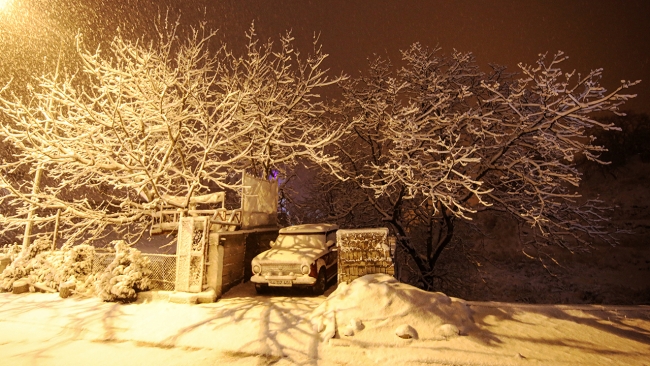 Malatya'da gece saatlerinde etkili olan kar, kenti beyaza bürüdü. Araçların ve ağaçların üstü ile sokaklar karla kaplandı.