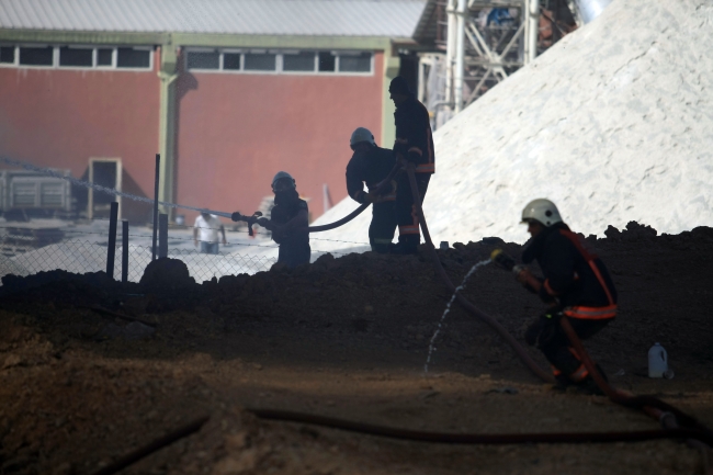 İşçilerin durumu haber vermesi üzerine olay yerine çok sayıda itfaiye ekibi sevk edildi.