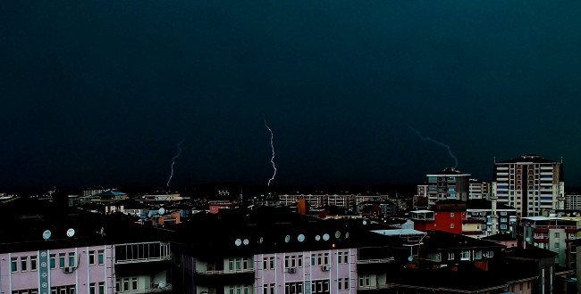 Sağanak, yolları göle çevirip araç sürücülerine zor anlar yaşatırken, aralıklarla görülen şimşekler ise geceyi aydınlattı.