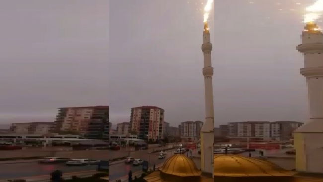 Yağışı cep telefonu ile görüntüleyen bir kişi ise tesadüfen evinin yanındaki cami minaresine yıldırımın düşme anını kaydetti. Camideki paratonerin şimşeği çektiği sırada enerji ile ortaya çıkan alev topu dikkati çekti.
