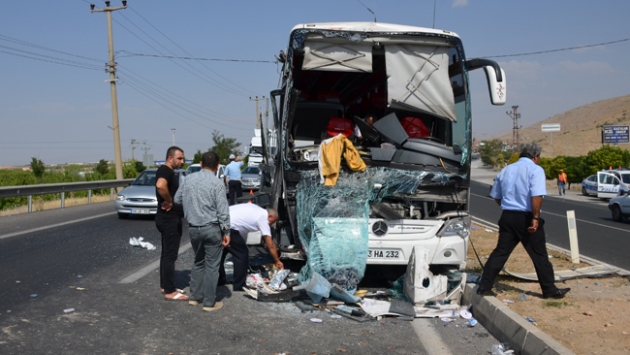 Alınan bilgiye göre, Ankara istikametine giden Fatih Alataş idaresindeki 23 HA 232 plakalı yolcu otobüsü, Malatya-Ankara karayolu Elemendik mevkisinde, Gökhan Turhan'ın kullandığı 44 NU 192 plakalı kayısı yüklü tıra arkadan çarptı.