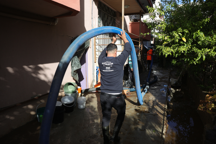 Antalya Büyükşehir Belediyesi ve Manavgat Belediyesi ekiplerinin de destek verdiği çalışmalar kapsamında su ve çamur altında kalan iş yerlerinde sular çekiliyor, eşyalar temizleniyor.