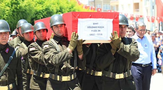 Hakkari'nin Şemdinli ilçesinde şehit düşen sözleşmeli piyade er Oğuzhan Küçük son yolculuğuna uğurlandı.