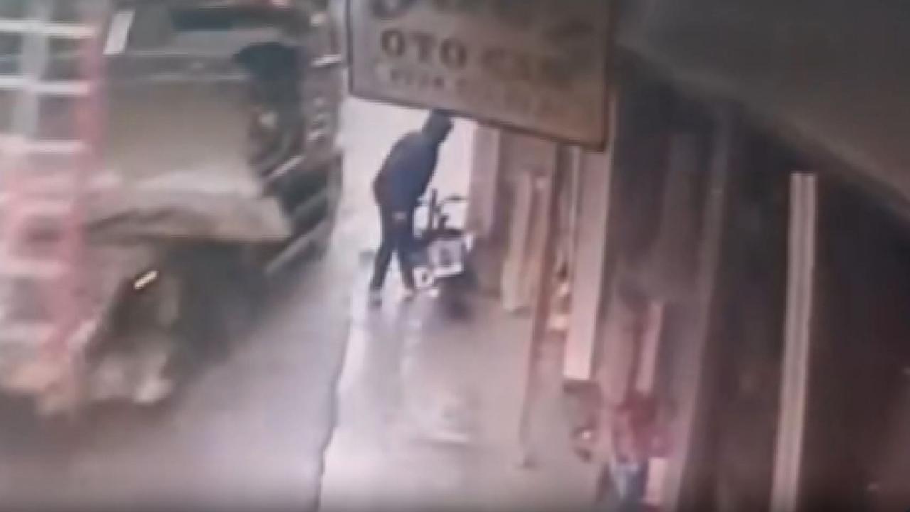Kaza anı çevredeki bir iş yerinin güvenlik kamerasınca kaydedildi.