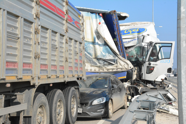 İstanbul-İzmir Çevreyolu'nda dün sabah saatlerinde oluşan yoğun sis nedeniyle zincirleme trafik kazası meydana geldi.