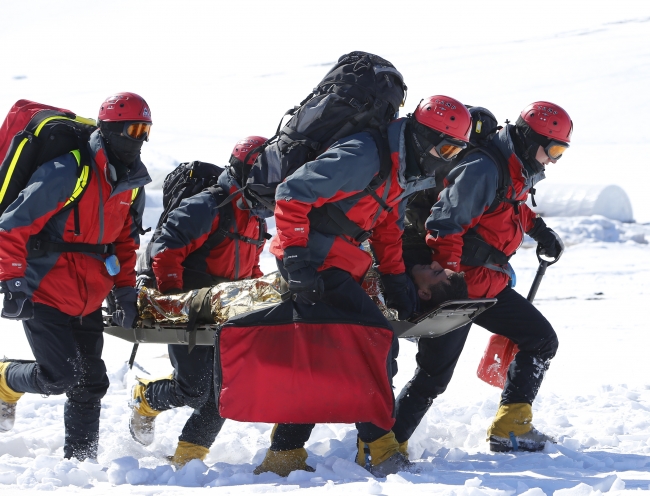 Eğitimleri kapsamında zaman zaman tatbikatlar yapan ekip, senaryo gereği, çığ altında kalan vatandaşı kurtarmak için anında harekete geçiyor. Alana gelen ekip, ilk olarak bayraklama yapıp bölgeyi işaretliyor.
