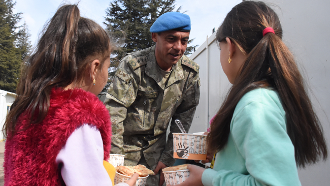 Mehmetçik, ayrıca mahallenin kırsal kesimlerindeki yerleşim yerlerini de gezerek buradaki depremzedelere pişirdikleri yemekleri götürüp, giyim ihtiyaçlarını karşılıyor.