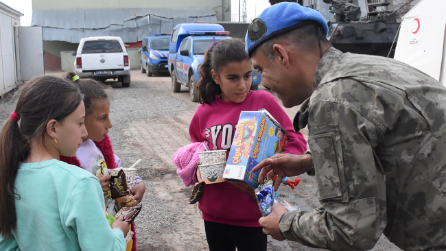 Dağlık ve kırsal kesimlerde araçlarla devriye atan askerler, depremzedelerin yakacak odun ihtiyaçlarını karşılıyor, çocuklara oyuncaklar dağıtıyor.