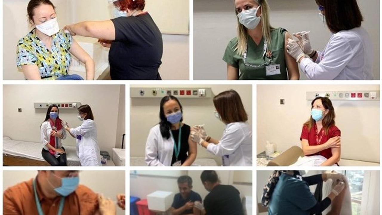 Mersin Şehir Eğitim ve Araştırma Hastanesinin Twitter hesabından, aşılanan sağlık çalışanlarının fotoğrafı paylaşıldı.
