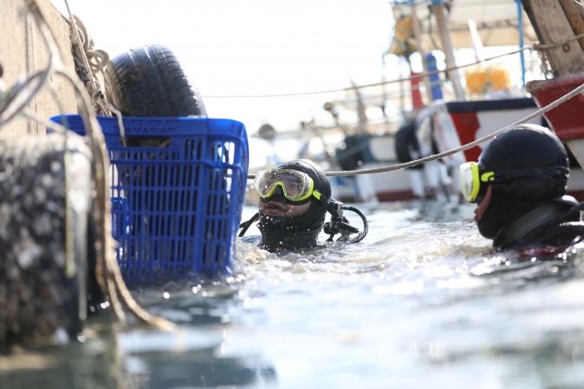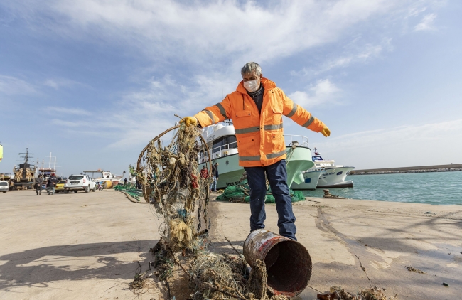 Deniz kirliliğine dikkati çekmek için Sahil Güvenlik Akdeniz Bölge Komutanlığı tarafından başlatılan "Deniz Dibi Temizleme Faaliyeti", Erdemli Balıkçı Barınağı'nda devam etti.