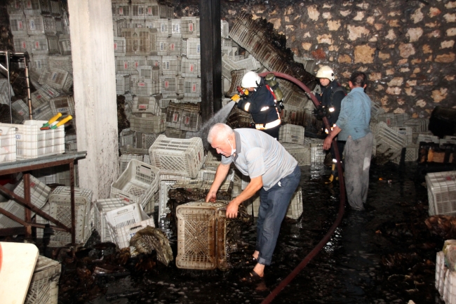 Adnan Menderes Mahallesi Eskiköy Sokak'ta bulunan iki katlı evin zemin katındaki limon sandıklarının bulunduğu depoda henüz belirlenemeyen nedenle yangın çıktı.