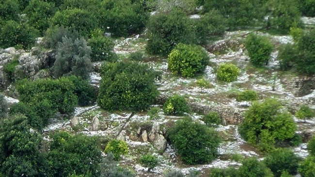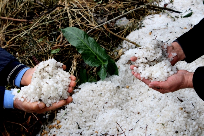 Dolu, ilçedeki şeftali, kayısı, erik ve avokado ağaçları ile açıkta üretilen sebzelere de zarar verdi.