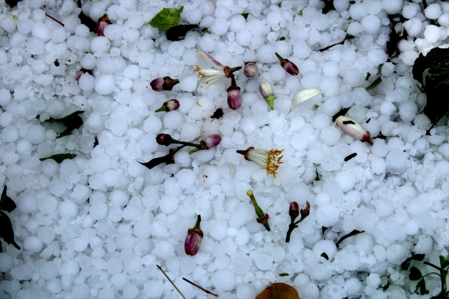 Sarıyer Mahallesi Muhtarı Bekir Demiraslan, gazetecilere yaptığı açıklamada, bu hafta ikinci kez doluyla karşılaştıklarını belirterek, "Dolu aniden bastırdı ve 15 dakika sürdü. Yeni çiçek açan yaklaşık 2 bin dönümlük narenciyede büyük zarar oluştu." dedi.