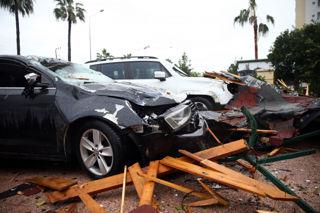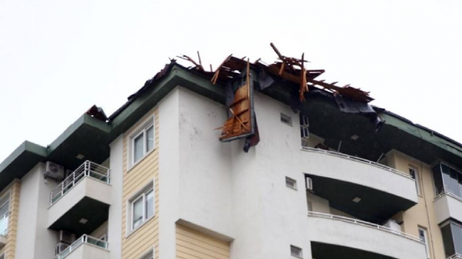 Bir kısmı apartman bahçesine bir kısmı da Vali Hüseyin Aksoy Caddesi'ne uçan çatı nedeniyle park halindeki 3 otomobilde hasar oluştu, yolun büyük kısmı trafiğe kapandı.