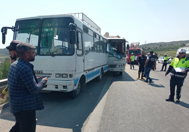 Otoyolda aynı istikamette ilerleyen Ş.G. yönetimindeki Mersin Su ve Kanalizasyon İdaresi (MESKİ) Genel Müdürlüğüne ait kamyon, iki midibüse de çarptı.
