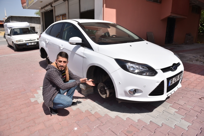 "Tekerleklerin çalındığı haberi önce kardeşime geliyor. O da beni arayarak 'Arabana bir bak, sağlam duruyor mu?' dedi. Çıktım, baktım ki arabanın tekerlekleri yok. Arabayı da tekerleklerini çaldıktan sonra parke üstüne bindirerek öyle bırakmışlar. Böyle görünce şok oldum. Aslında araca zarar vermemek amacıyla teker kısmını yere bırakmak yerine parkeye bindirmeleri iyi olmuş. Bir de 20 metre ileride bir aracın daha tekerlerini çalmışlar."