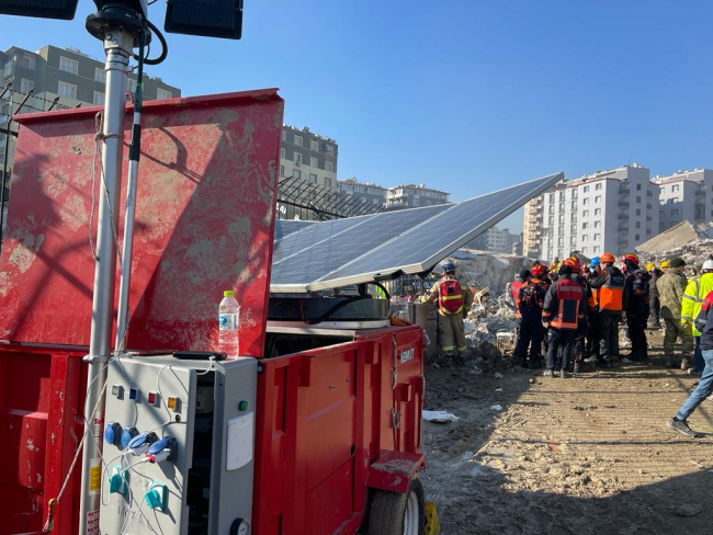 Enerjiyi güneşten alan, sessiz çalışan ve gerektiğinde kırıcı- delici aletlere elektrik sağlayabilen cihaz, Hatay'da ekiplere büyük fayda sağladı.