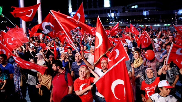 Fetullahçı Terör Örgütü'nün darbe girişimine tepki için kent meydanlarında toplanan vatandaşlar 'demokrasi nöbeti'ne devam ediyor.