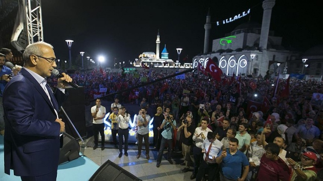 Kalkınma Bakanı Lütfi Elvan, Konya Mevlana Meydanı'nda, Fetullahçı Terör Örgütü'nün (FETÖ) darbe girişimine karşı demokrasi nöbeti tutan vatandaşlara yaptığı konuşmada, darbecilerin ihanetine karşı milletin dimdik ayakta durduğunu söyledi.