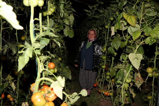 Karaçulha Mahallesi'nde seracılık yapan Zübeyde Ongün de ürettikleri domateslere verdikleri emeğin karşılığını alabilmek için soğuk havalarda da nöbet tuttuklarını ifade etti.