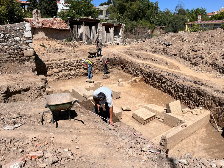 Ahmet Çavuş Hayıtlı Mahallesi Eski Sokak'ta yıkılan eski bir evin yerine yapılacak bina inşaatı için temel kazısı öncesi Milas Müze Müdürlüğü tarafından sondaj çalışması gerçekleştirildi.