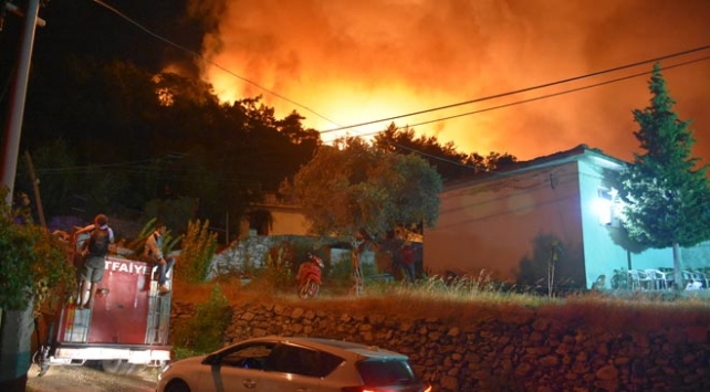 "Rüzgar hızının gece saatlerinde aniden 50 kilometreyi bulmasıyla yangın tekrar canlandı. Yangın aynı zamanda Zeytinköy ile komşu 450 nüfuslu Dağpınar Mahallesi'ni de tehdit etmeye başladı. Hemen burayı da tahliye ettik. Allah'a çok şükür rüzgarın da etkisini kaybetmesiyle burası herhangi bir zarar görmedi. Zeytinköy'de gece yeniden çıkan yangın sonucu 20 ev daha yandı. Yangın kontrol altına alındı, soğutma çalışmaları sürdürülüyor. Şu an tehlikeli bir durum görünmüyor. Yaklaşık 15 bin arı kovanı zarar gördü. Evleri zarar gören vatandaşların ihtiyaçlarını karşılayabilmek için çalışma yürütüyoruz. Vatandaşlarımızın barınma ihtiyaçlarını karşılayabilmek için çadır ve konteyner desteğinde bulunacağız. Kendilerine nakdi yardımlar yapacağız. Kızılay ekiplerimiz burada lojistik destek sağlayacaklar. Aile ve Sosyal Politikalar Müdürlüğümüzün psikolog ve sosyologları da burada. Bunun yanı sıra bölgede hasar tespit çalışmaları başlatıldı."