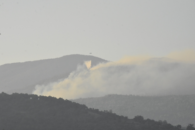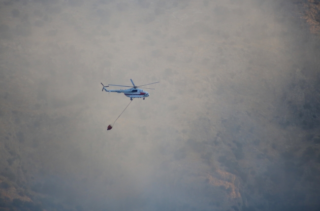 Yanan alana yakın bölgede bulunan Mumcular Barajı'ndan su alan helikopterler, söndürme çalışmalarını etkin bir şekilde sürdürüyor.