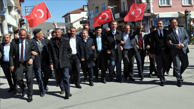 Kırıkkale'nin Keskin ilçesine bağlı 55 köy ve 6 merkez mahalle muhtarı, 16 Nisan'da yapılacak halk oylamasında "evet" oylarına destek için ilçede yürüyüş gerçekleştirdi.