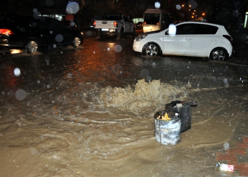 Öğlen saatlerinde başlayan şiddetli yağmur, trafikte aksamalara neden oldu, birçok evi su bastı, rögar kapakları yerinden çıktı ve sokaklar su altında kaldı.