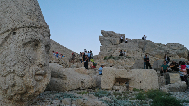 Ziyaretçilerden Rukiye Kaplan da ilk defa Nemrut Dağı'na tırmandığını belirterek, "Uzun bir yürüyüşün ve yorgunluğun ardından zirveye ulaştık. Buradaki heykeller ve dağ, insanın yorgunluğunu alıyor. İlk defa çıktım ve bundan sonra geleceğim yerlerden birisi olacak." diye konuştu.